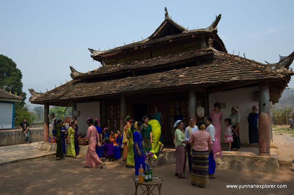 To see the old year out, for three days before their New Year, the Dai of Mangxin, a small township near Menglian, pay their respects to the old year by travelling to three temples in the vicinity. At each temple they celebrate with dance, food, offerings and just a little bit of watersplashing.