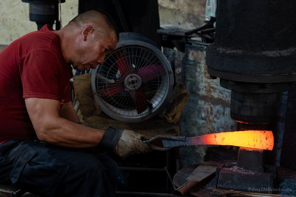 A blacksmith in Fengyi's Jiangxi village 凤仪江西村 still makes farmtools by hand. In the village once most households were blacksmiths, today only a handful remain.