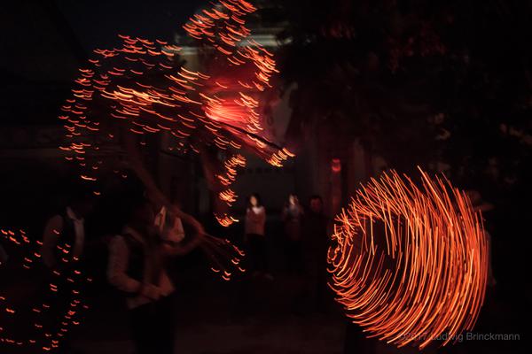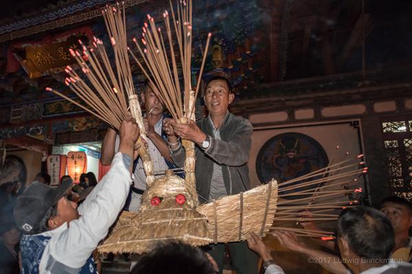 In Longkan 龙龛 village near Dali, during the "Ghost Month", a spectacular fire dragon dance, with the dragon made of burning incense sticks.