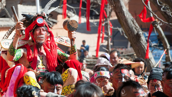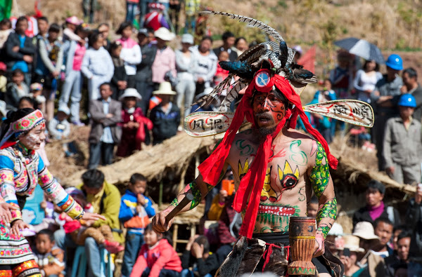 The Mute God or Yaba 哑巴 ceremonies in Xiangyun county have evolved into an elaborate Gesamtkunstwerk with dance, body ornamentation, sculpture and painting involving the entire Yi village. Compared to a few years ago, the imagery has taken on a much more sexualized character, maybe reflecting a need to create ever more outlandish 'traditional' festivals.
