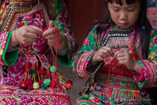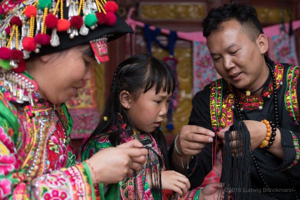 A weaving Yi family in 吊草 village, just south of Xiaguan.
